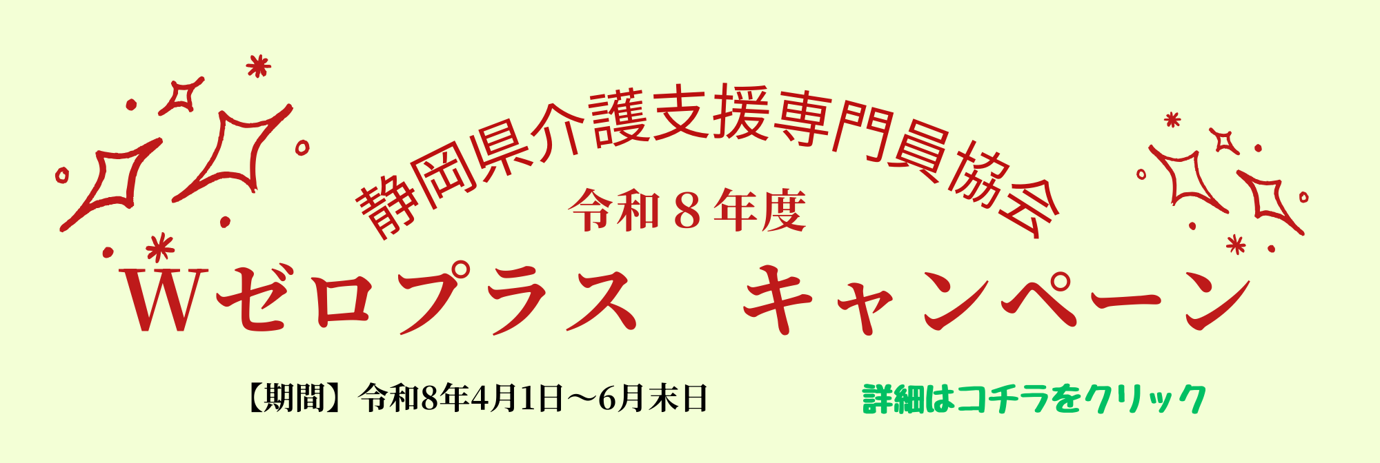 - 静岡県介護支援専門員協会と日本介護支援専門員協会に新規同時入会で、両団体の入会金が0円、さらに県協会年会費...